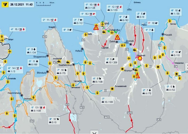 Gul veðurviðvörun og óvissustig á Tröllaskaga