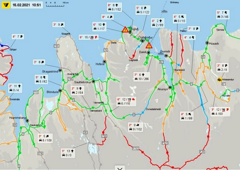 Annars eru allir aðalvegir færir þrátt fyrir vetrarfærð um norðan- og austanvert landið sem einkum á við um fjallvegi. Óvissustig er í gildi vegna snjóflóðahættu í Ólafsfjarðarmúla.