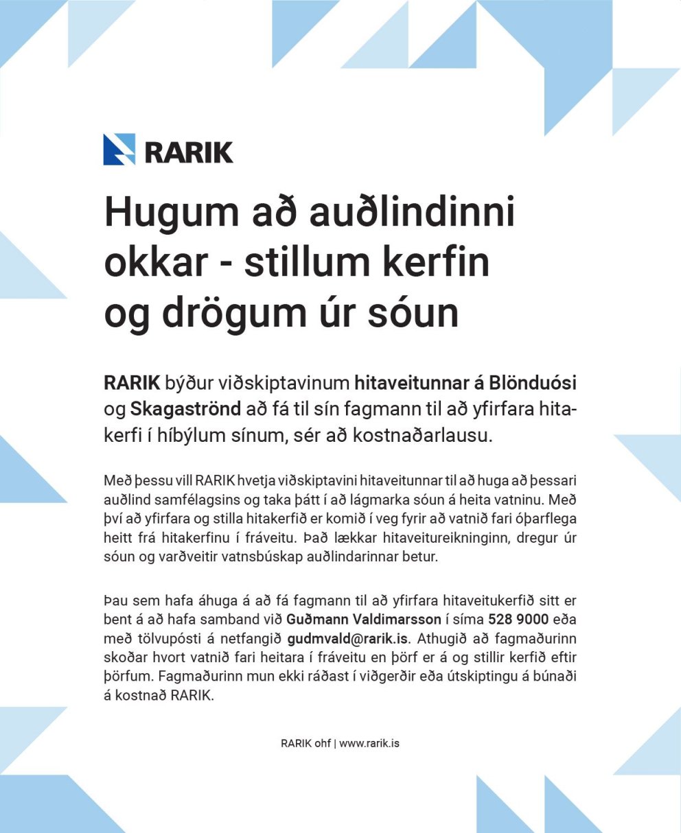RARIK býður viðskiptavinum hitaveitunnar á Blönduósi og Skagaströnd að fá til sín fagmann til að yfirfara hitakerfi í híbýlum sínum, sér að kostnaðarlausu.