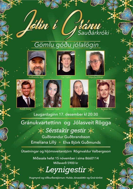 „Áheyrendur mega búast við ljúfri og notalegri kvöldstund með frábæru skagfirsku tónlistarfólki. Hvetjum bara alla til þess að mæta og eiga með okkur ljúfa kvöldstund í Gránu, gleyma jólastressinu og njóta þess að vera til,“ segir Hulda sem hvetur áhugasama til að hafa hraðann á þar sem örfáir miðar eru eftir – svo miði er ennþá möguleiki í síma 8660114.