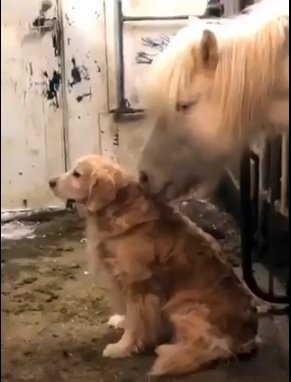 Ljóni snapar sér nudd hjá albínóaHundurinn Ljóni og hryssan Gletta náðu ágætlega saman í hesthúsi einu á Sauðárkróki þegar Ljóni náði að snapa sér smá nudd hjá Glettu. „Hundurinn er mikill nautnaseggur og notar hvert tækifæri til að fá klór eða nudd,“ segir Helga Rósa Pálsdóttir, eigandi hans. Hún segist ekki hafa séð það áður hjá hundinum að hann snapi nudd hjá hesti og þessi tvö hafa aldrei hist áður. Til frekari upplýsinga um aðalleikarana þá er Ljóni af Golden Retriver kyni en Gletta er sérstök að því leytinu að hún er albínói.