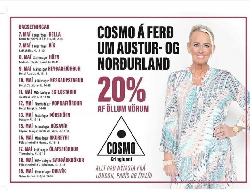 Í dag klukkan til klukkan 18:00 er markaður í ljósheimum frá Cosmo Kringlunni.