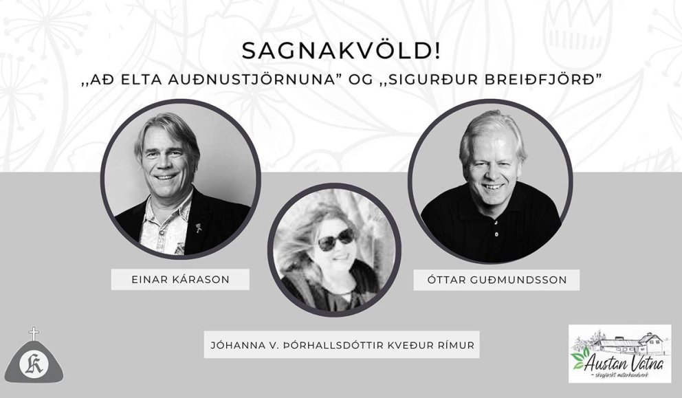 Það verður Sagnakvöld í Kakalaskála laugardagskvöldið 24. ágúst en þar stíga á stokk þau Einar Kárason, Óttar Guðmundsson og Jóhanna V. Þorvaldsdóttir sem kveður rímur. Erindi Einars kallast Að elta auðnustjörnuna en Óttar mun fjalla um hinn litríka Sigurð Breiðfjörð, samskipti hans við Fjölnismenn og ýmislegt fleira.