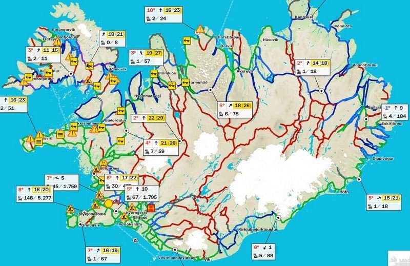 Á vef Vegagerðarinnar er athygli vakin á því að gular vindaviðvaranir Veðurstofu Íslands séu í gildi í dag um landið norðan og vestanvert með hálku á fjallvegum nyrðra. Vegir mikið til greiðfærir um landið sunnanvert.