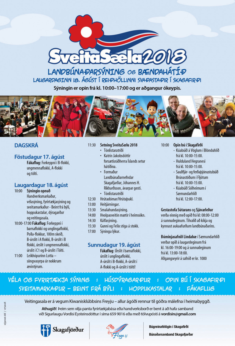 Sveitasæla 2018, landbúnaðarsýning og bændahátíð, verður haldin laugardaginn 18. ágúst í reiðhöllinni Svaðastöðum í Skagafirði.