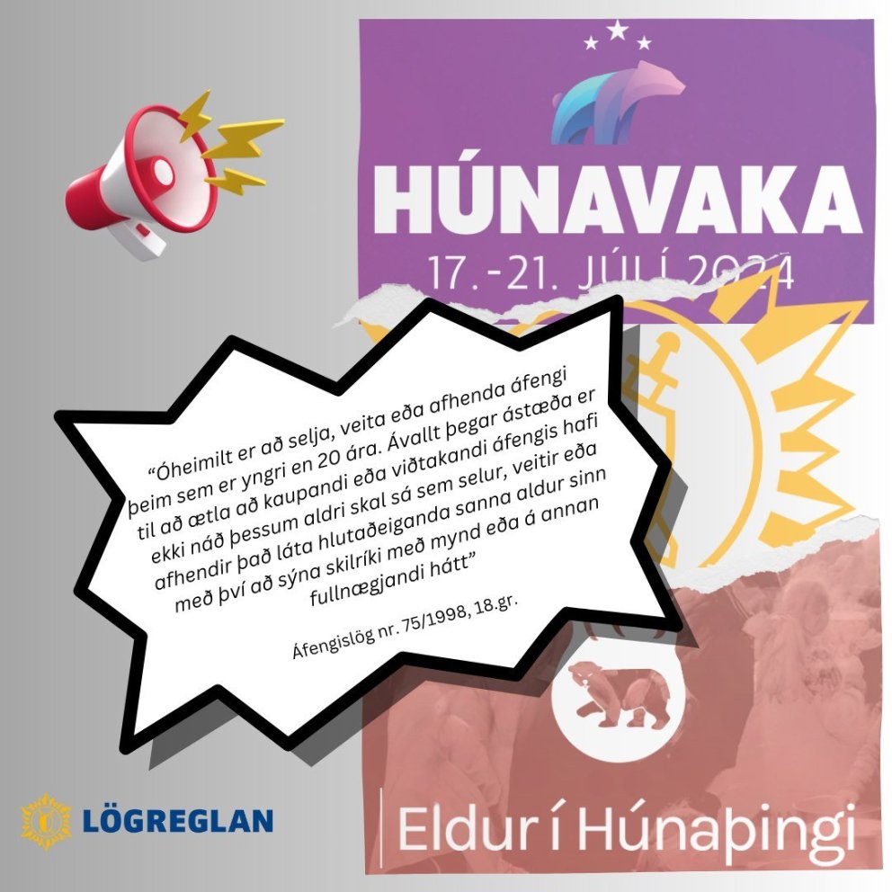 Lögreglan á Norðurlandi vestra og viðburðastjórnendur Húnavöku og Elds í Húnaþingi hafa tekið höndum saman um aðgerðir til að stemma stigu við áfengisneyslu ungmenna undir aldri. Lögregla mun viðhafa virkt eftirlit með áfengislöggjöfinni á báðum hátíðum þar sem skýrt er kveðið á um að engum má afhenda áfengi sem ekki er orðinn 20 ára, miðað við afmælisdag. Þá má heldur enginn sem ekki er orðinn 20 ára neyta áfengis.
