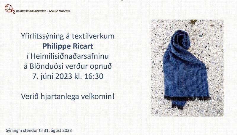 Yfirlitssýning á textílverkum Philippe Recart opnar á morgun 7. júní kl. 16:30 í Heimilisiðnaðarsafninu á Blönduósi og stendur út ágústmánuð. Sumaropnun safnsins hófst þann 1. júní og er opið alla daga frá kl. 10 til 17:00. Á Facebook-síðu Heimilisiðnaðarsafnsins segir að Philippe hafi verið einstakur handverks- og listamaður sem lagði áherslu á að viðhalda gömlum íslenskum handverkshefðum sem og að nota íslenskt hráefni og efnivið eins og kostur var.