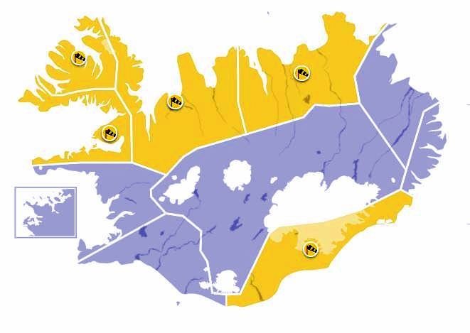 Veðurstofa Íslands hefur gefið út gula viðvörun vegna veðurs fyrir Breiðafjörð, Vestfirði, Strandir og Norðurland vestra, Norðurland eystra og Suðausturland en búist er við suðvestan storm í kvöld og nótt 15-23 metra á sekúndu með rigningu og hviðum að 40 m/s. Það þýðir að varasamt getur verið fyrir ökutæki sem taka á sig mikinn vind að vera á ferðinni.
