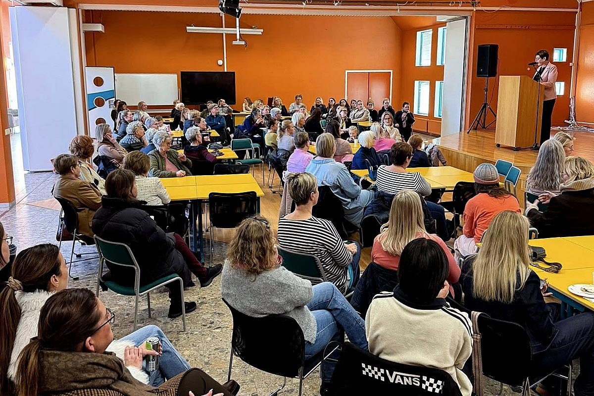 Í gær fóru konur á Ísland í verkfall til að minna á og halda á lofti kröfum Kvennaárs sem er einmitt á þessu ári. Á höfuðborgarsvæðinu fjölmenntu konur og kvár niður á Austurvöll en konur stóðu saman um allt land og víða voru haldnir samstöðufundir. Einn slíkur fór fram í Fjölbrautaskóla Norðurlands vestra á Sauðárkróki en þar komu saman yfir 100 konur og heppnaðist fundurinn ákaflega vel samkvæmt upplýsingum Feykis.