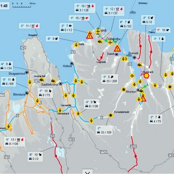 Þæfingsfærð er nú á Siglufjarðarvegi samkv. heimasíðu Vegagerðarinnar, snjóþekja á Þverárfjalli og hálka á flestum leiðum norðanlands. Lýst var yfir óvissustigi í dag vegna snjóflóðahættu á Siglufjarðarvegi og Ólafsfjarðarmúla. Unnið er að mokstri á Siglufjarðarvegi, Þverárfjalli og Svalbarðsströnd að Grenivík en Víkurskarð er lokað vegna snjóa. Snjókoma er á Öxnadalsheiði og éljagangur á Vatnsskarði líkt og víða á Norðurlandi vestra og er vegfarendum bent á að hált er á Holtavörðuheiði og Bröttubrekku auk éljagangsins en vel fært öllum bílum.