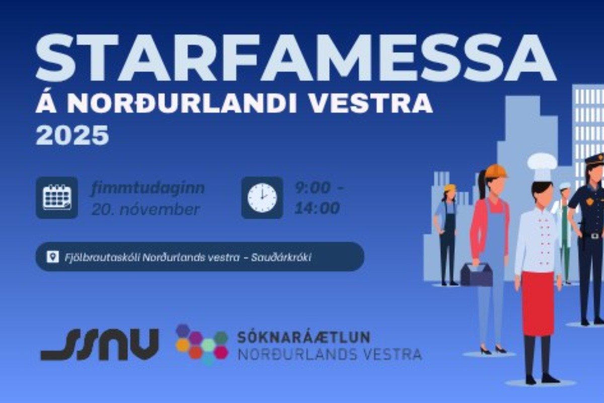 Starfamessa fyrir ungmenni á Norðurlandi vestra verður haldin þann 20. nóvember n.k. , en hún er eitt af áhersluverkefnum Sóknaráætlunar landshlutans fyrir árið sem er að líða. Þetta er í þriðja sinn sem ungmennum í landshlutanum gefst kostur á að kynnast fjölmörgum starfsgreinum, sem hægt er að vinna við innan og utan landshlutans, bakgrunn þeirra og menntunarkröfum. Nemendur í 9. og 10. bekk allra grunnskóla á svæðinu, sem og nemendur FNV eru boðnir hjartanlega velkomnir að taka samtalið við fagfólkið þennan dag.
